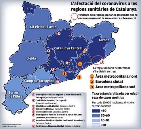 El desconfinament i el virus creen les seves pròpies geografies, el govern ha de tenir la capacitat de donar respostes puntuals a casos específics, i defugir del model centralista que les Regions Sanitàries representen en alguns territoris. El que s’ha critica a Madrid, s’ha de poder criticar a Catalunya.